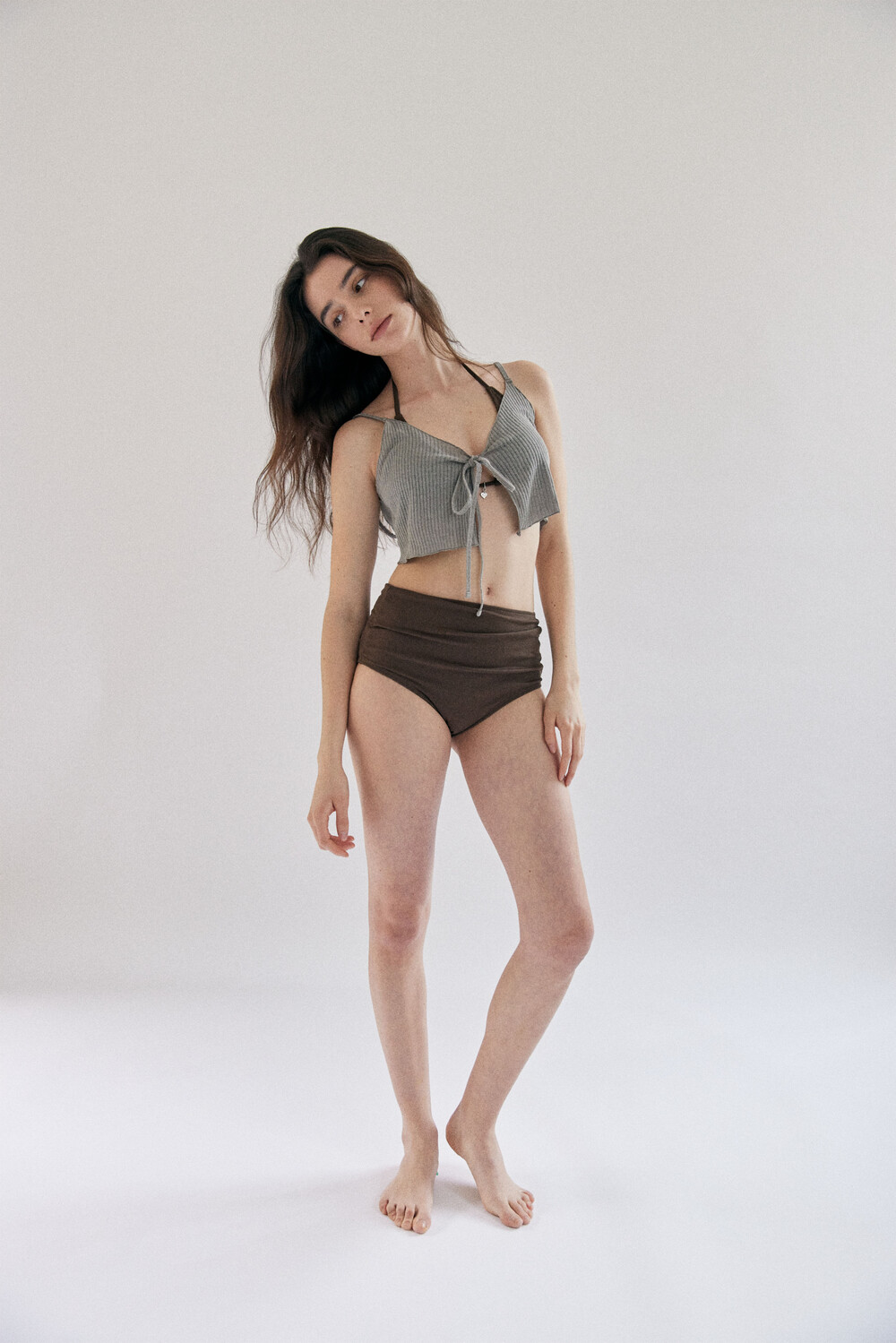 기장감을 허리선 높이에서 끊어 주어 입었을때 더욱 슬림해보이는 효과를 가진 커버업입니다.