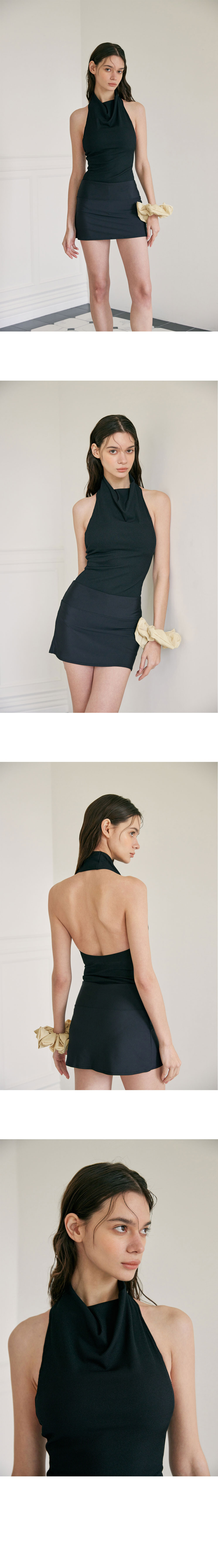 홀터넥 라인이 어깨라인을 자연스럽게 보완해줍니다.