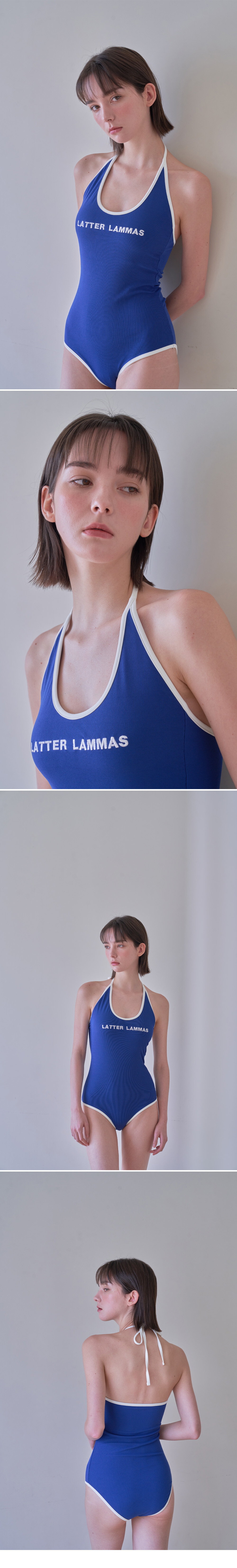 코발트 블루 원단에 흰색 랍바와 자수를 배색하여 청량하고 스포티한 느낌을 줍니다.