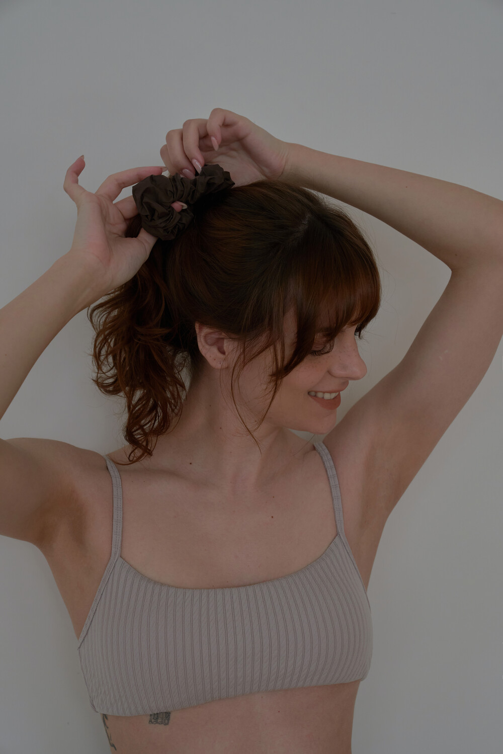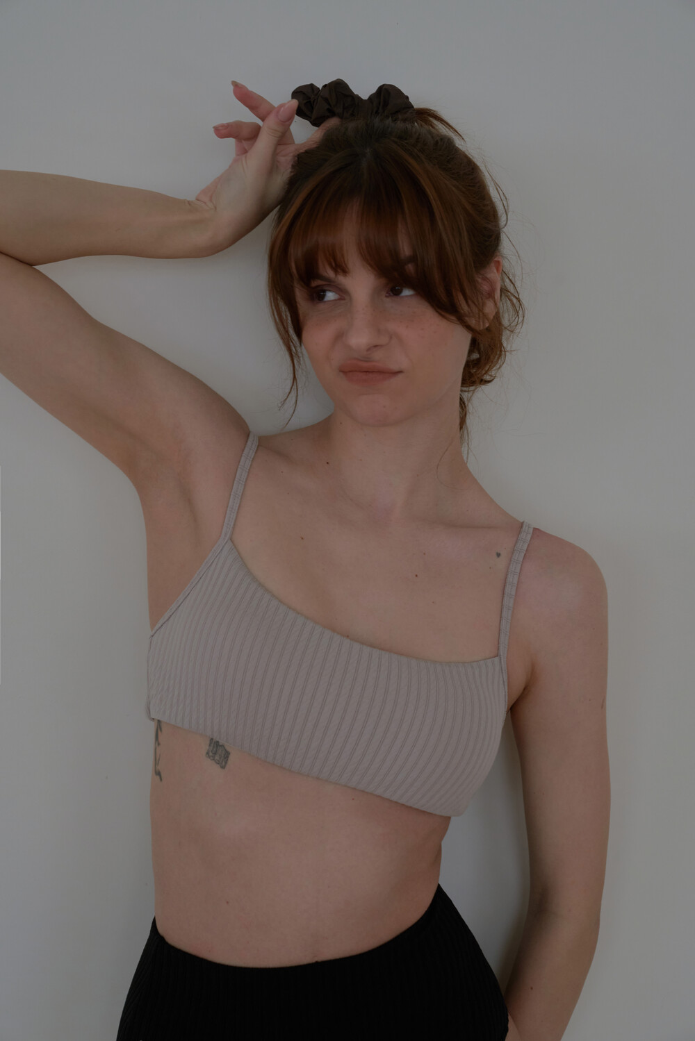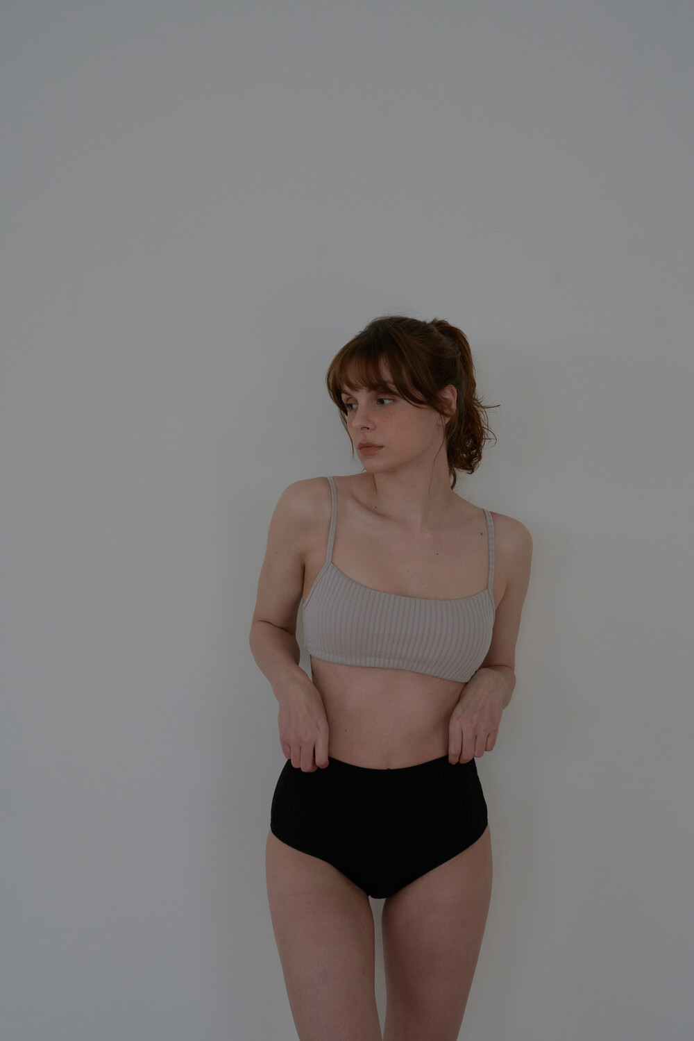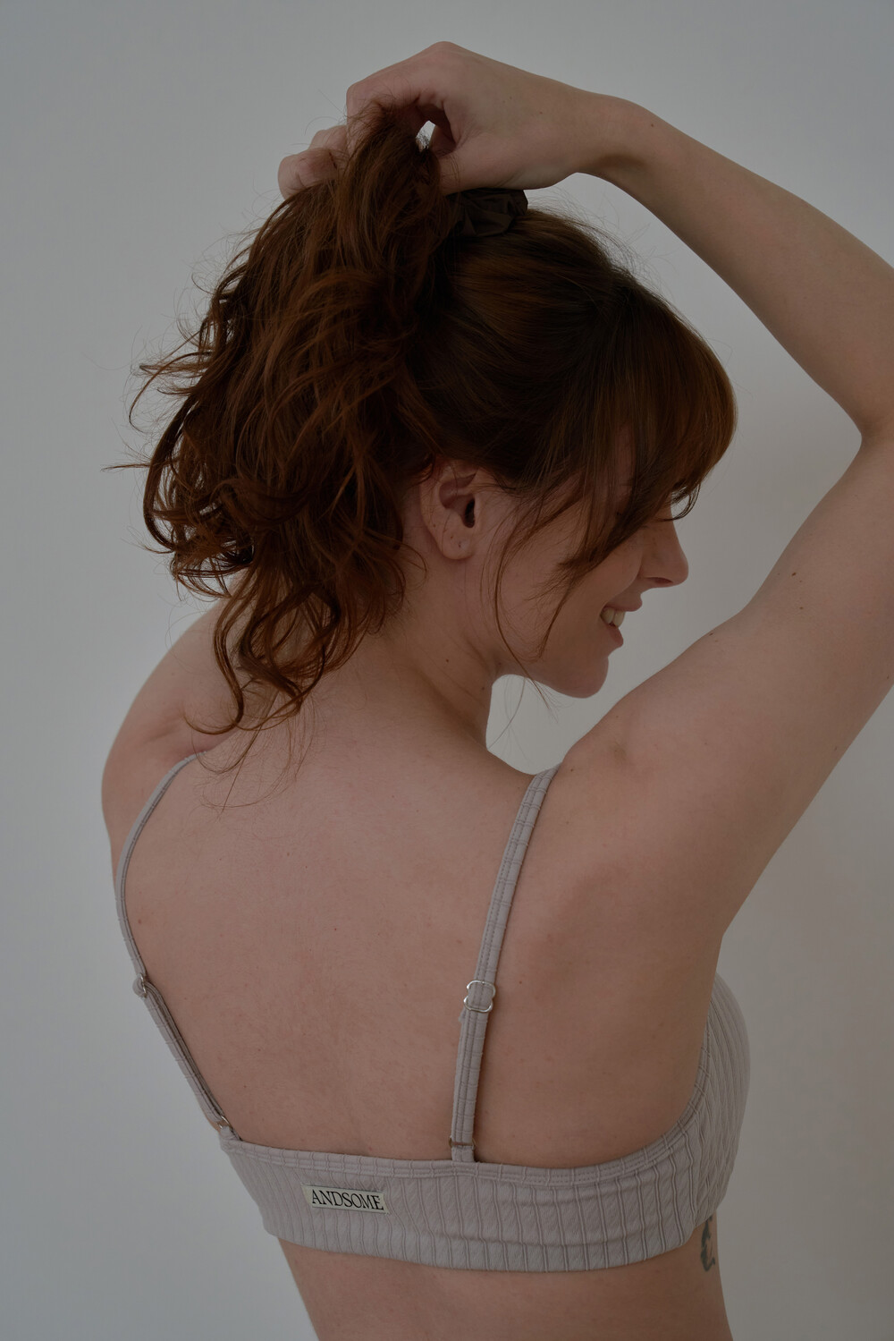 브라는 바스트 흉곽까지 길게 덮어주는 디자인이 아닌 살짝 크롭한 기장으로 나온 미니멀한 제품입니다.