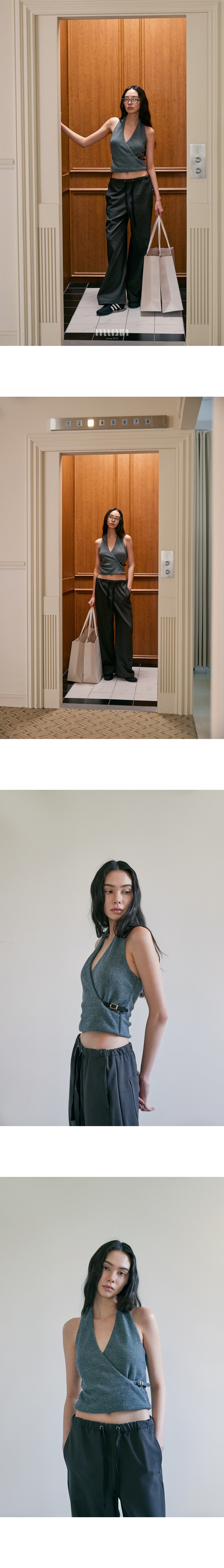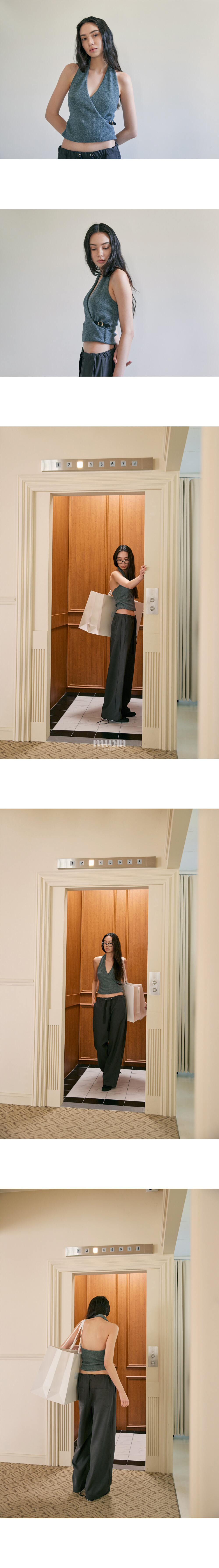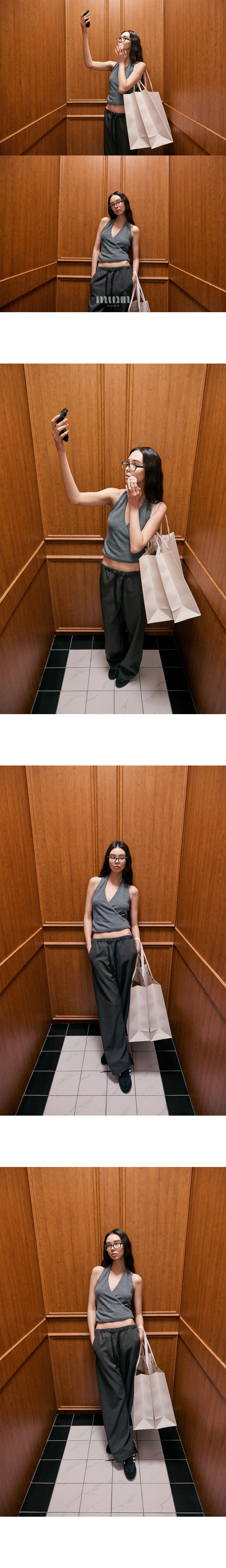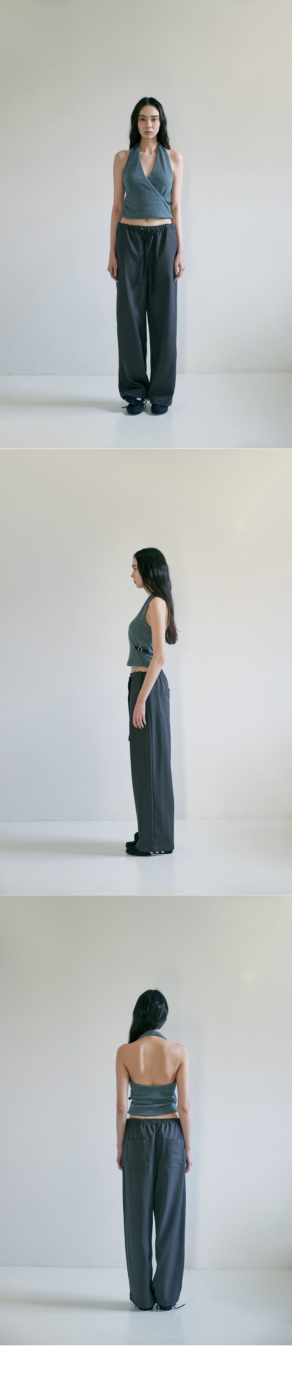 무겁게 흐르는 핏의 이지 스트링 팬츠입니다.