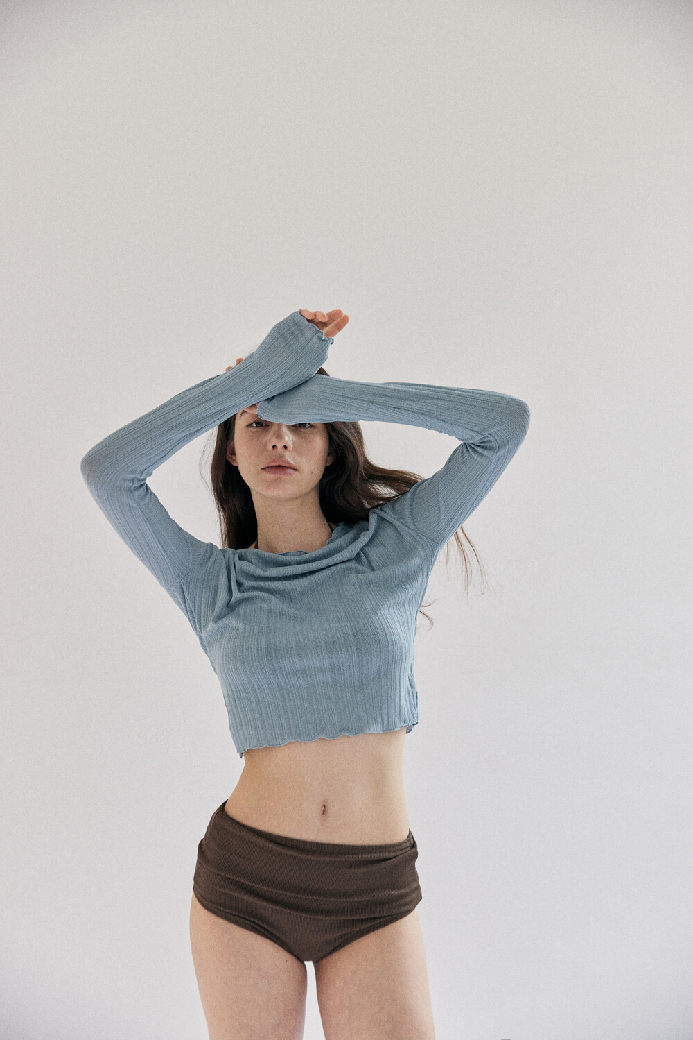 양쪽 허릿단에 슬릿이 있으며 소매 기장을 길게 제작하였습니다.