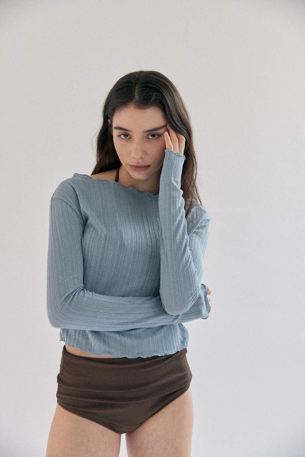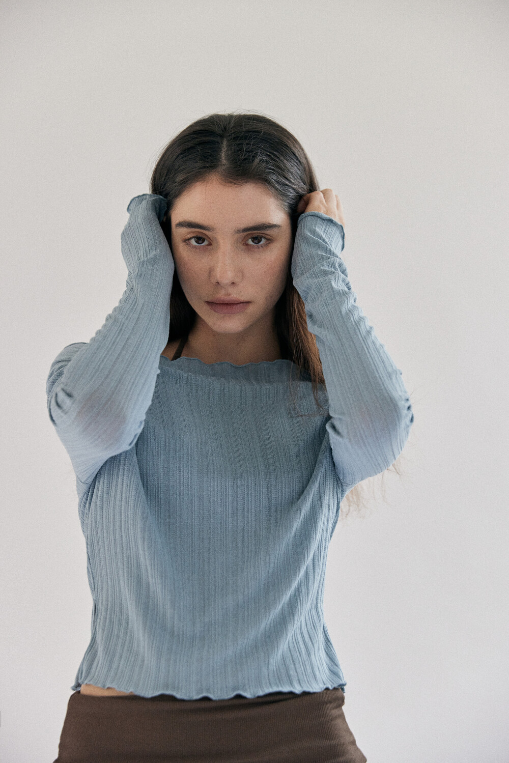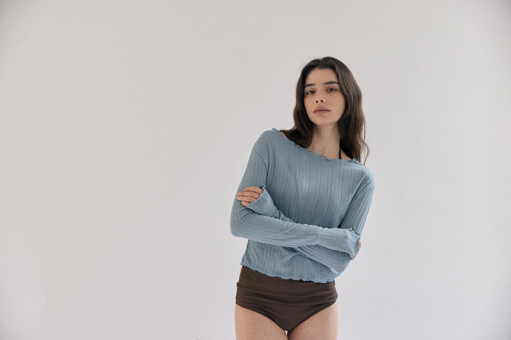 Solid lace slit top_sky blue