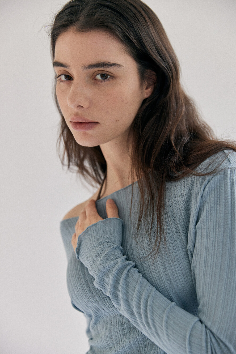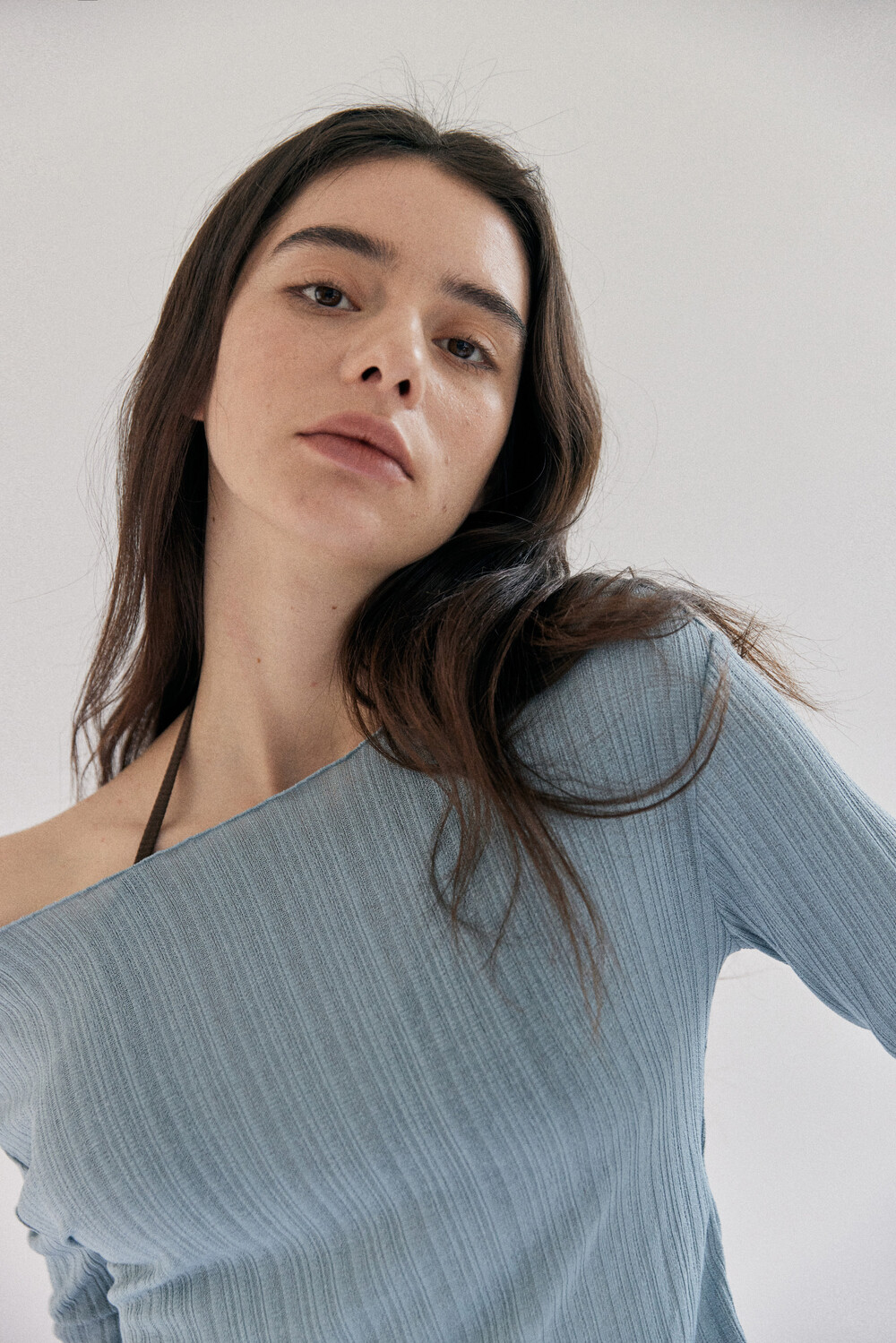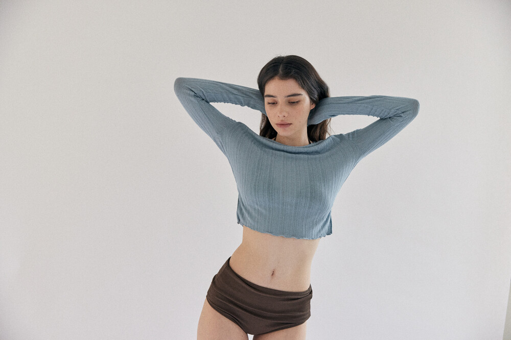 넥라인을 넓게 뽑아 한쪽 오프숄더로 스타일링이 가능합니다.