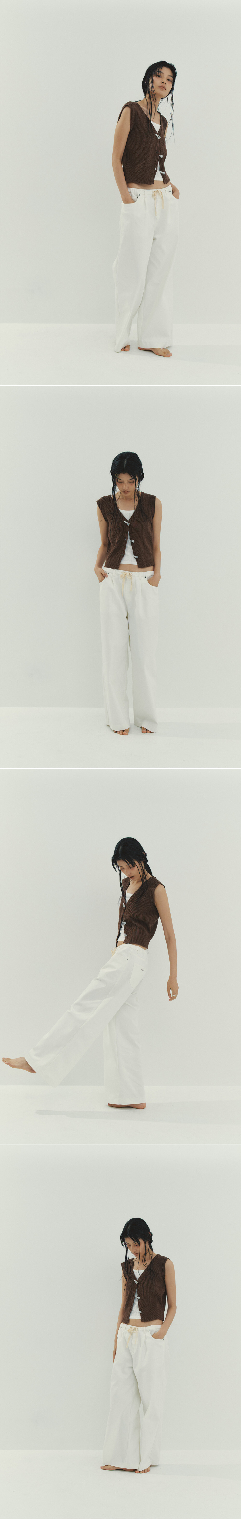 바지선 위로 딱 떨어지는 기장감으로 비키니위에 와이드 팬츠와 함께해주세요.
