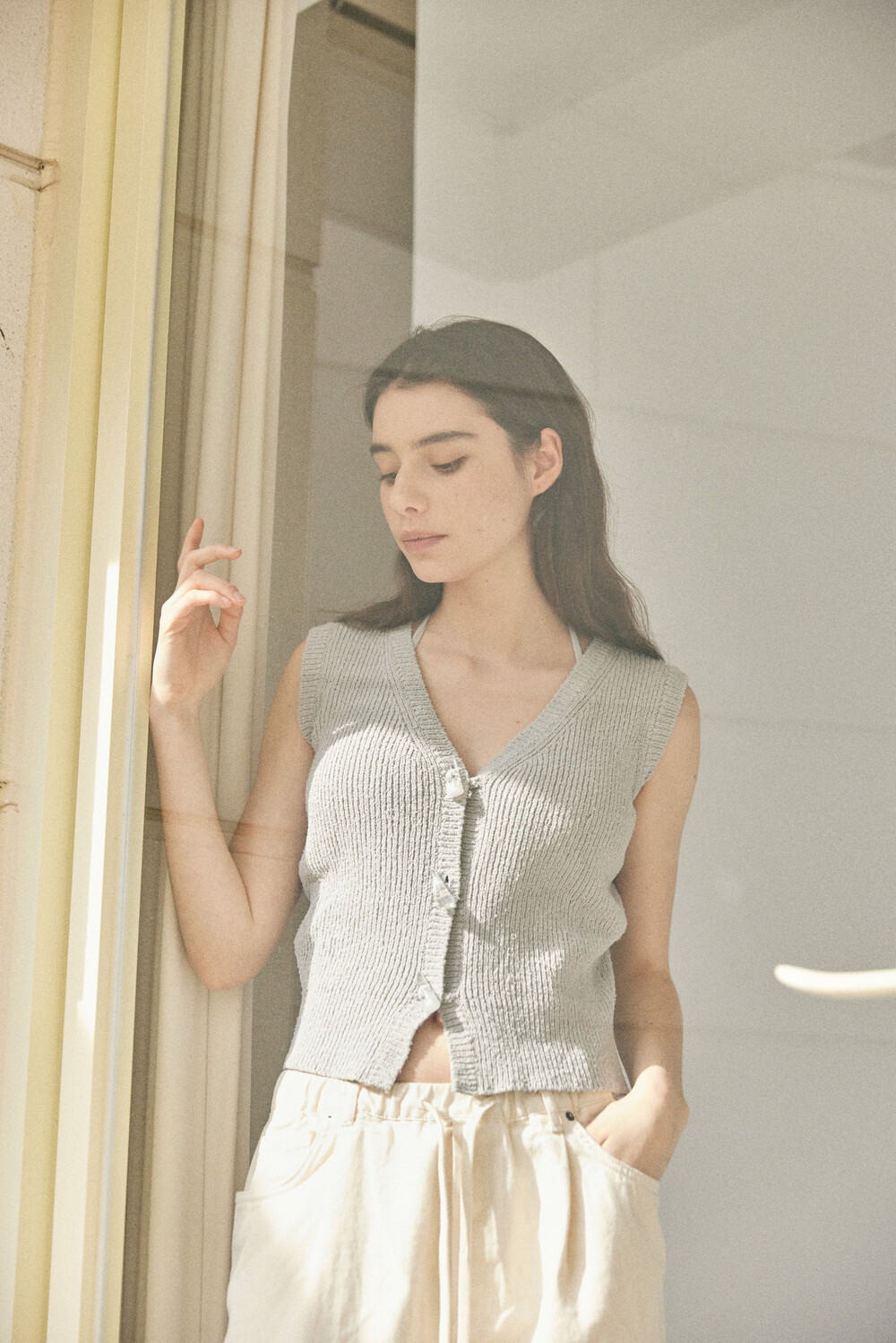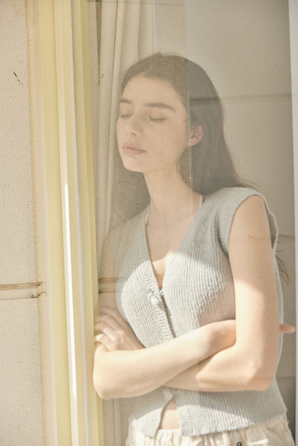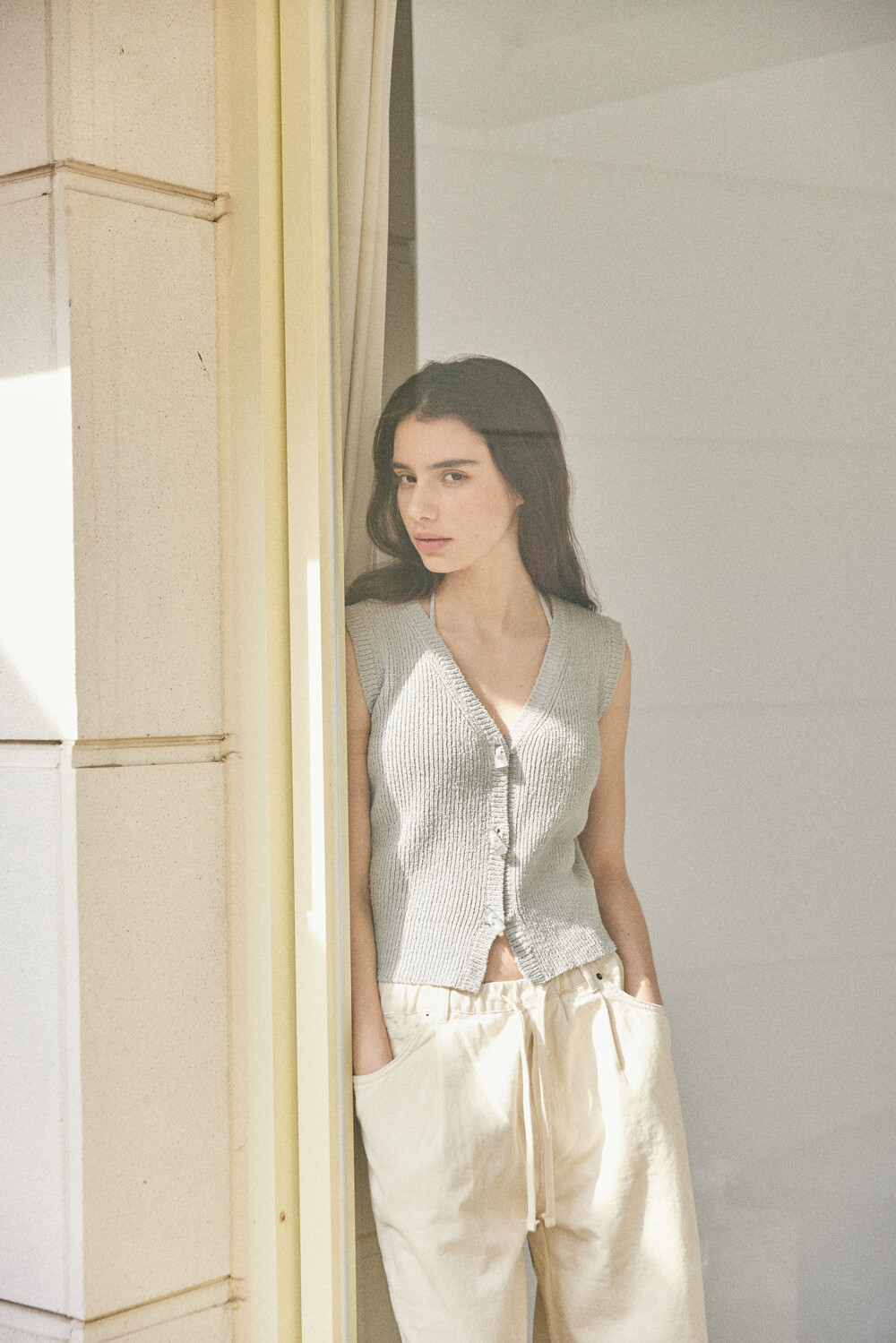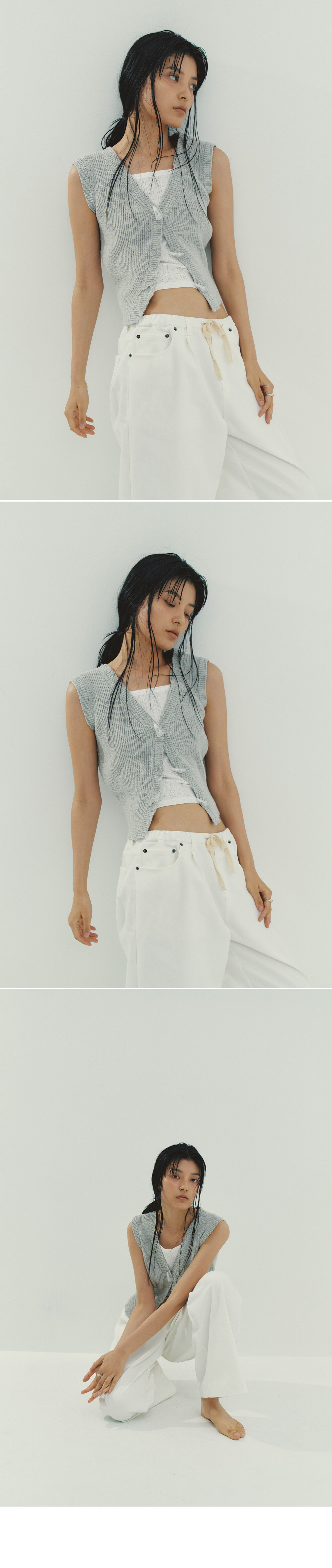 물빛을 담은 마블링 토글 단추를 사용한 브이넥 베스트 가디건 입니다.