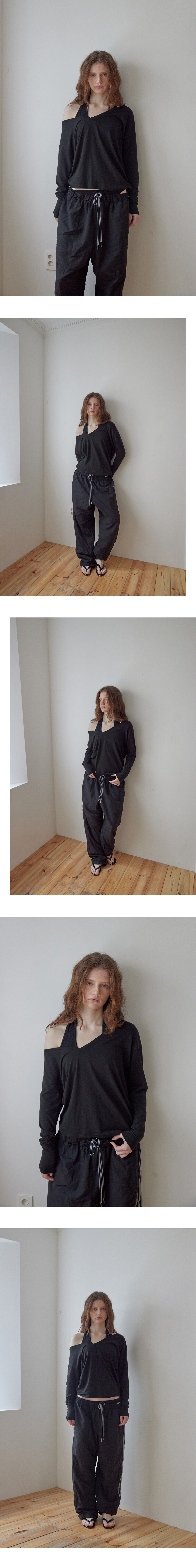 - 딥한 브이넥 라인의 오프 숄더 커버업 티