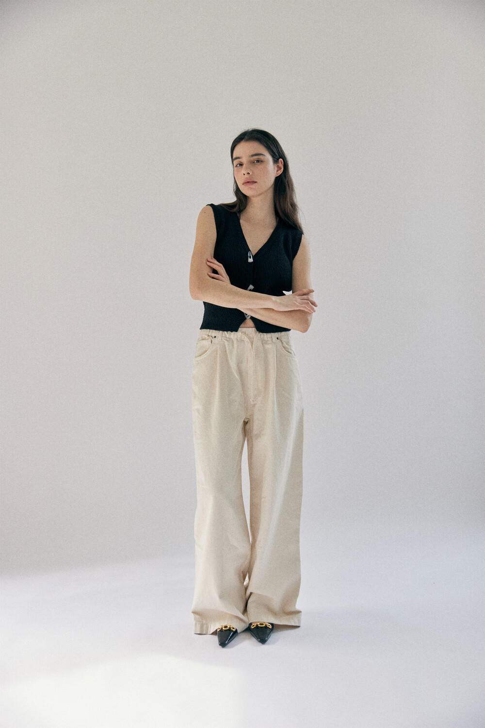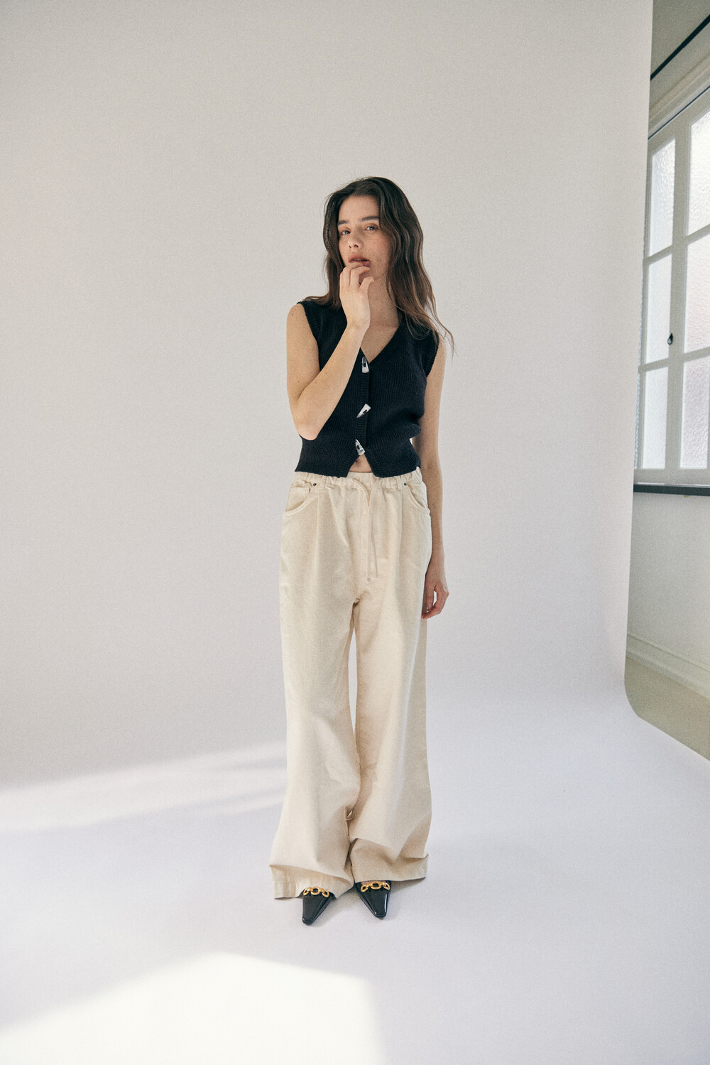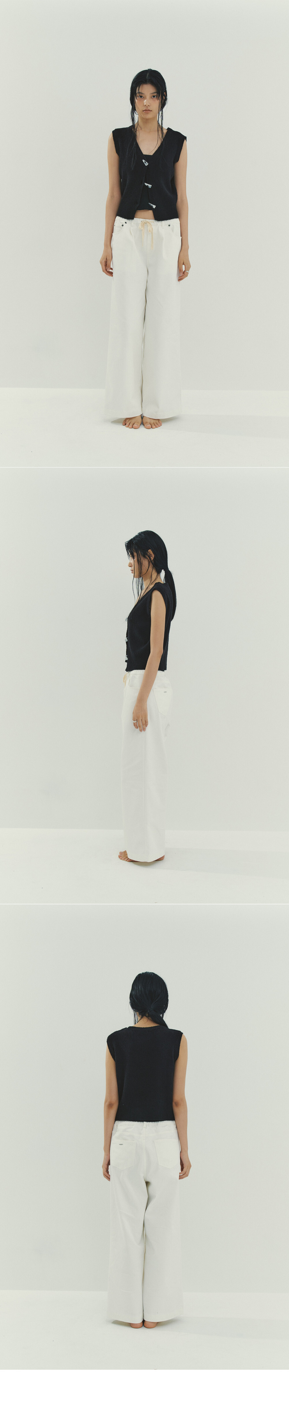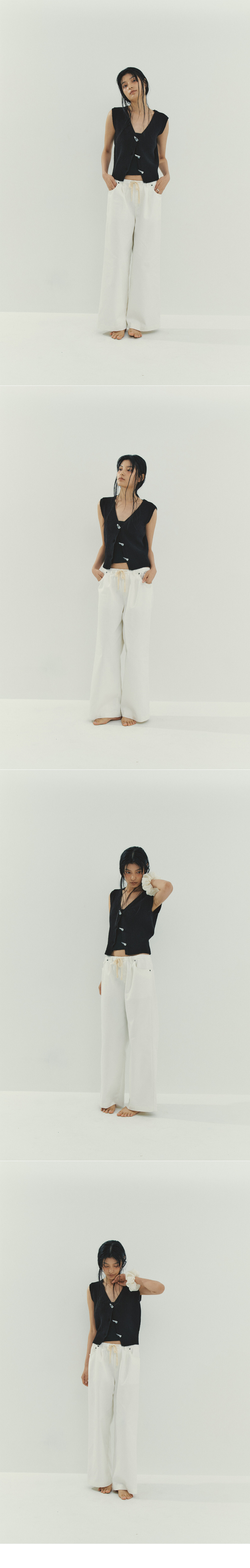 바지선 위로 딱 떨어지는 기장감으로 비키니위에 와이드 팬츠와 함께해주세요.