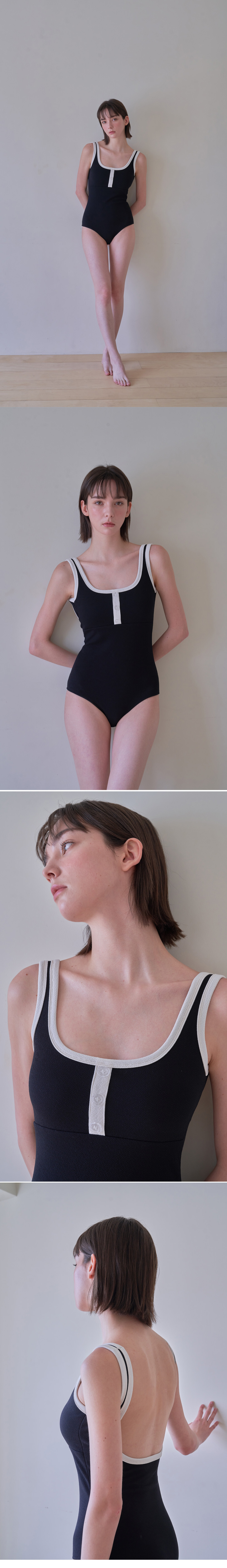 독특한 텍스처감의 원단을 사용하여고급스러운 분위기를 자아내는 스윔수트입니다.