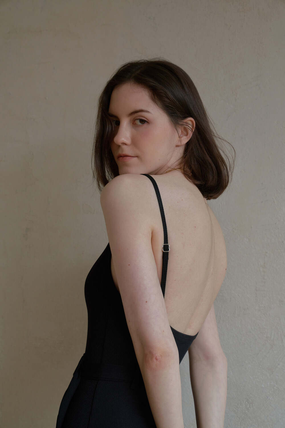 벨트 디테일의 골지 니트 원피스 수영복입니다.