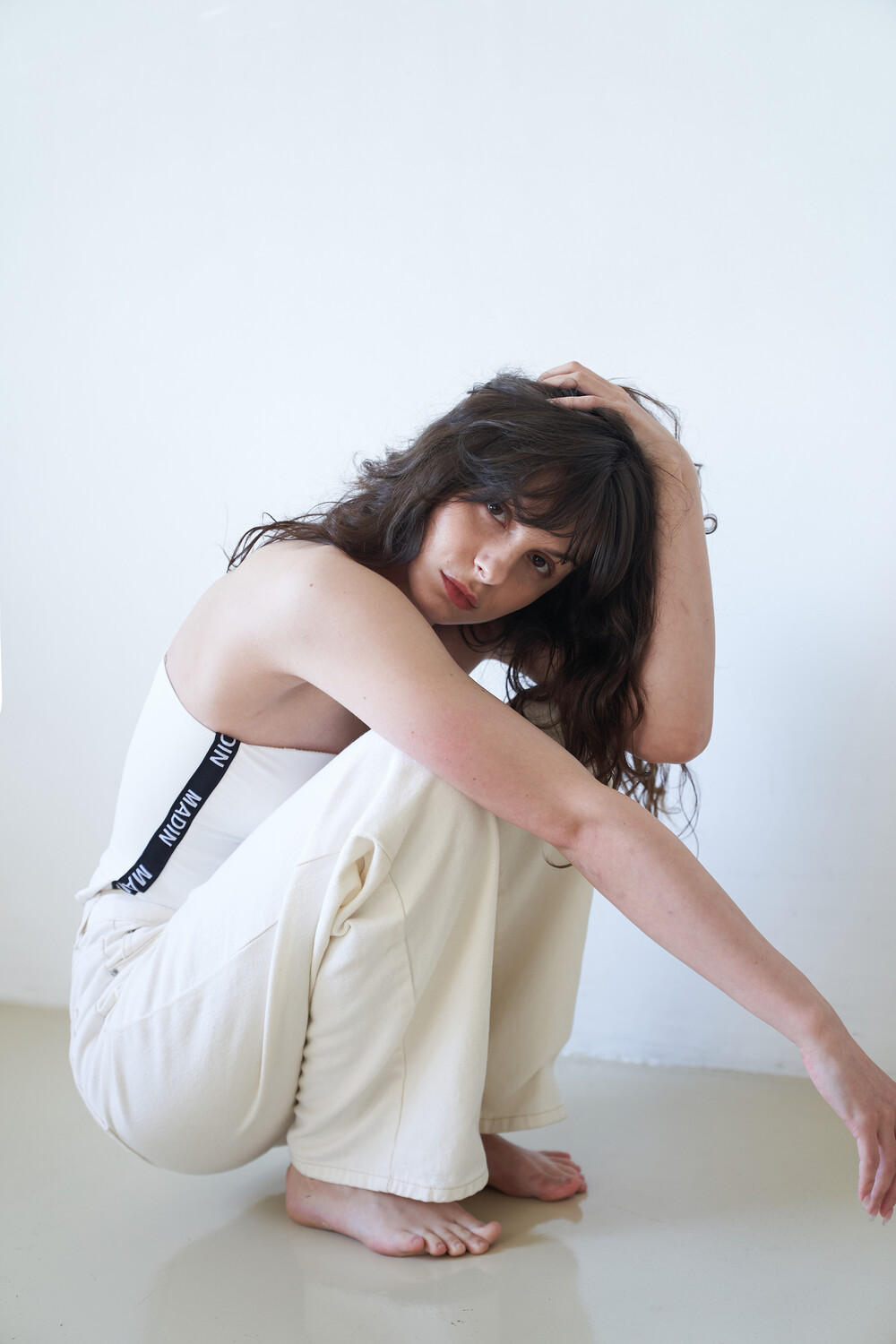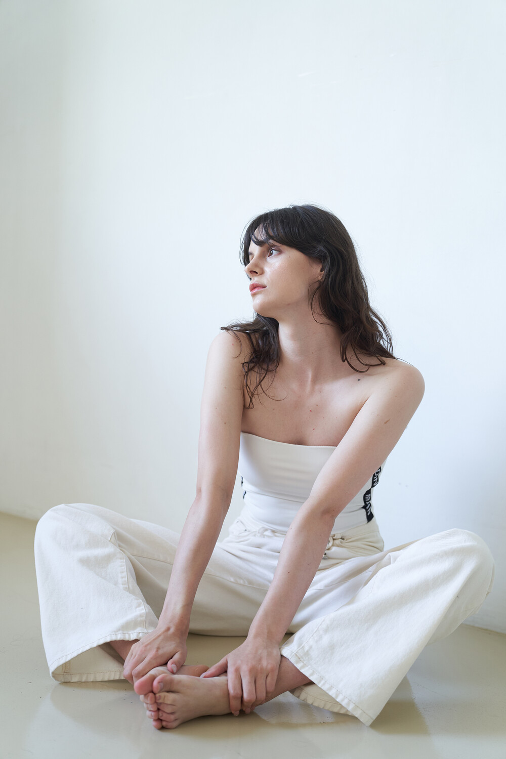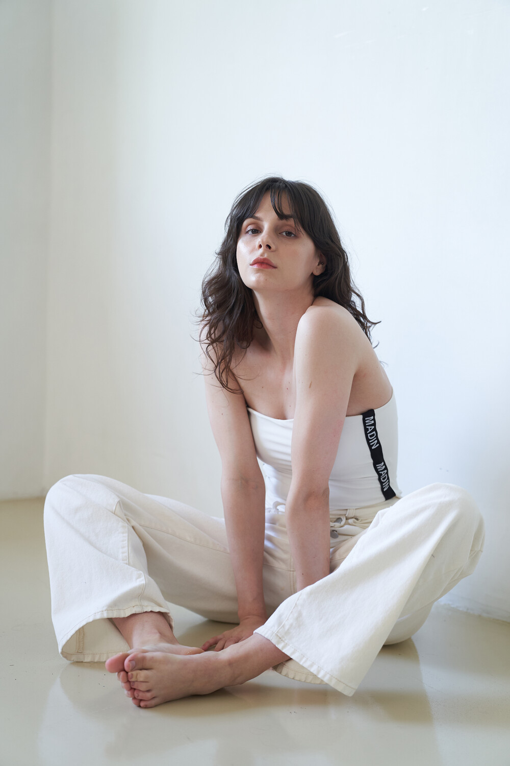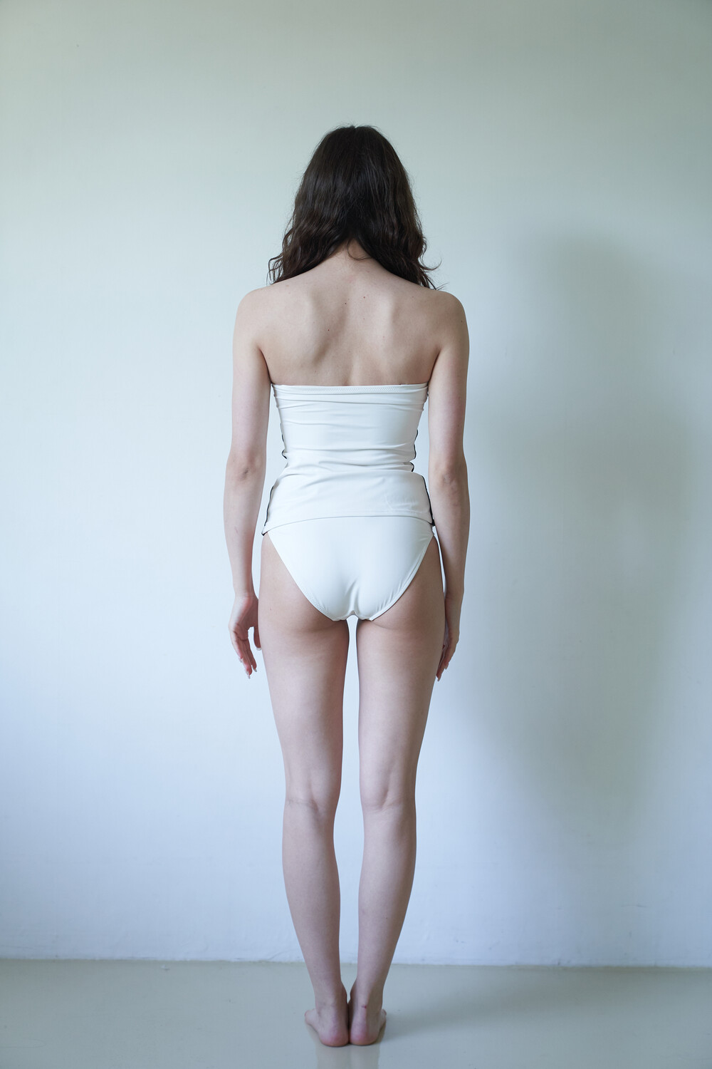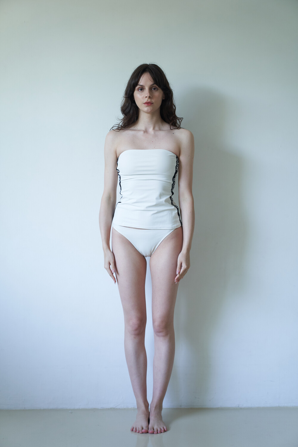 사이드 밴드가 포인트인 미니멀한 디자인의 탑 투피스입니다.